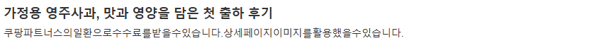 제가 사과를 고를 때 가장 중요한 점은 맛이에요. 특히나 입맛이 까다로운 편이라 사과의 품질이 중요하죠. "가정용 영주사과"는 달콤함과 산미가 완벽하게 조화를 이루고 있어서 첫 입에서 감동을 받았어요. 사과를 한 입 베어물자 그 달콤한 즙이 입 안 가득 퍼지며, 뒤따르는 상큼한 맛이 또 한 번 입맛을 사로잡았죠. 정말 맛있었어요!
