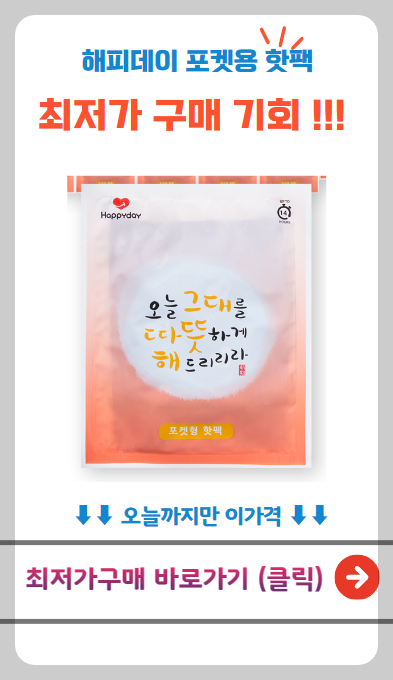 👉 해피데이 핫팩 활용 후기! 작지만 강력한 보온력!