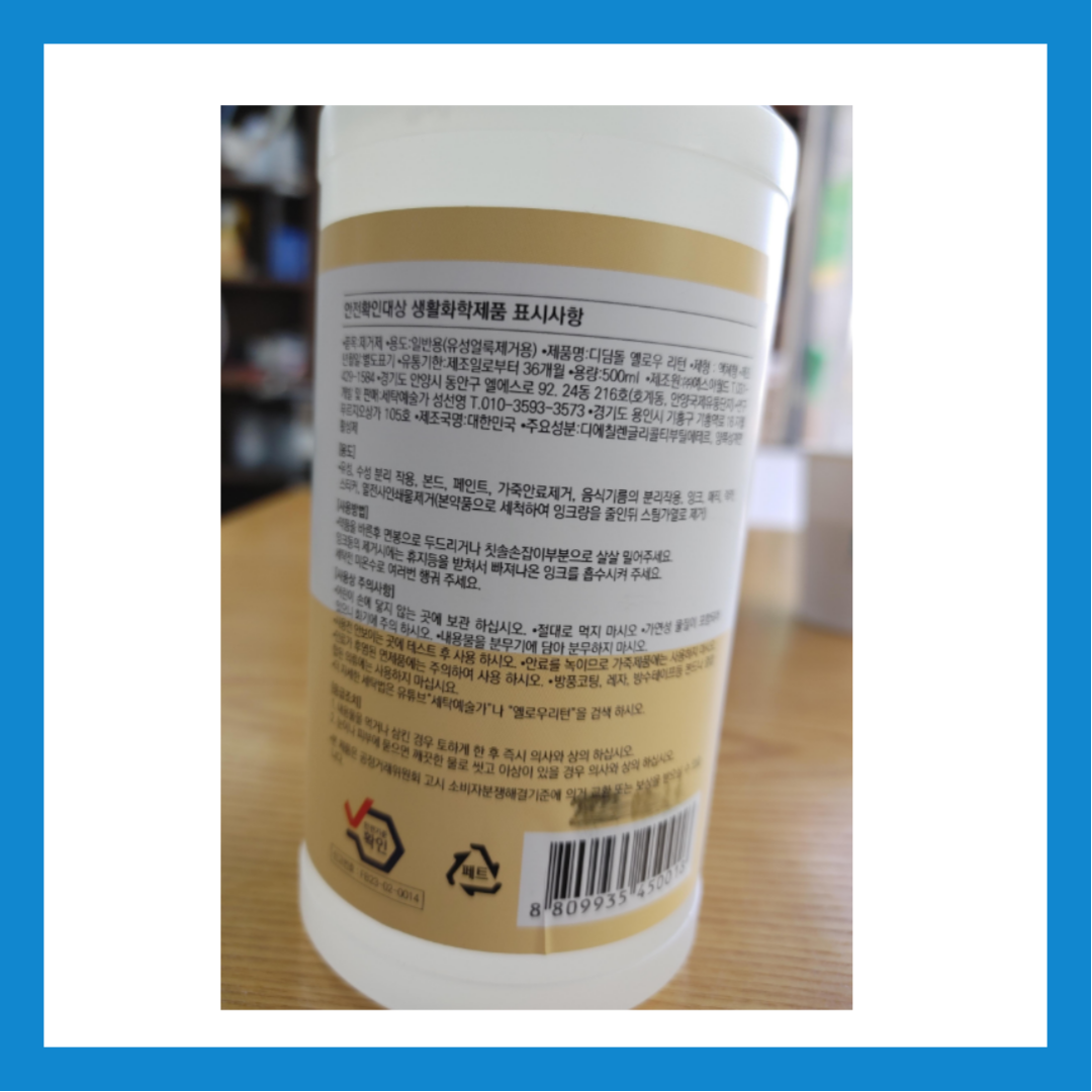 옐로우리턴은 기름때부터 스티커 자국까지, 정말 다양한 얼룩을 깔끔하게 제거할 수 있는 강력한 세정제입니다. 세정력이 뛰어난 이 제품을 사용하면 생활 속 얼룩 문제를 쉽게 해결할 수 있습니다. 저도 사용해보고 그 효과에 정말 놀랐어요!