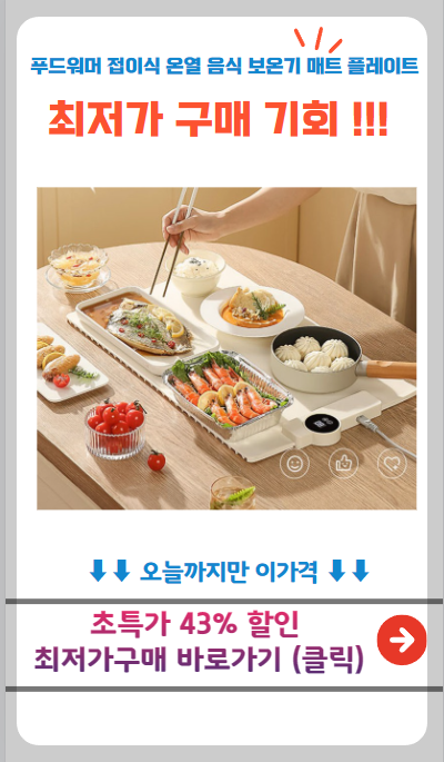 👉 음식의 온도를 일정하게 유지해주는 푸드워머 접이식 보온 플레이트, 정말 유용해요. 다양한 음식에 활용할 수 있고, 접이식이라 보관이 편리해요. 특히 겨울철엔 필수 아이템으로 적극 추천!