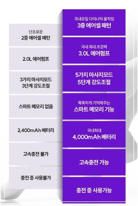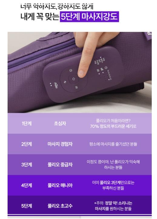 제가 직접 사용해본 후, 첫 번째로 느낀 점은 즉각적으로 노곤노곤 해지고 통증도 덜한 느낌이 들더라구요, 무언가 해소되는 느낌이었습니다. 특히 5가지 기능을 사용했을 때 부드럽게 풀리는 느낌이 인상적이었습니다. 하루 종일 서 있거나 장시간 앉아 있는 날이면 다리가 특히 무거워지곤 했는데, 이 제품을 쓰고 나서 다리의 부종도 줄어드는 것을 체감했습니다.