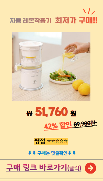 👉 제니퍼룸 자동 레몬 착즙기로 상큼함을 더하세요! 언제 어디서나 신선한 레몬즙을 간편하게! 건강한 음료로 몸과 마음을 리프레시하세요. 더 이상 번거롭게 손으로 짜지 마세요, 이젠 쉽게 즐길 수 있어요!