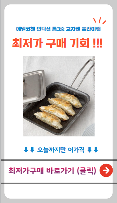 👉 에델코첸 프라이팬으로 매일 완벽한 요리! 탁월한 코팅으로 기름 없이도 쉽게 요리할 수 있고, 세척도 간편합니다. 내구성까지 갖춰 오래도록 사용할 수 있어요. 이제 주방의 필수 아이템! 지금 바로 확인 해보세요~!!🔽🔽🔽