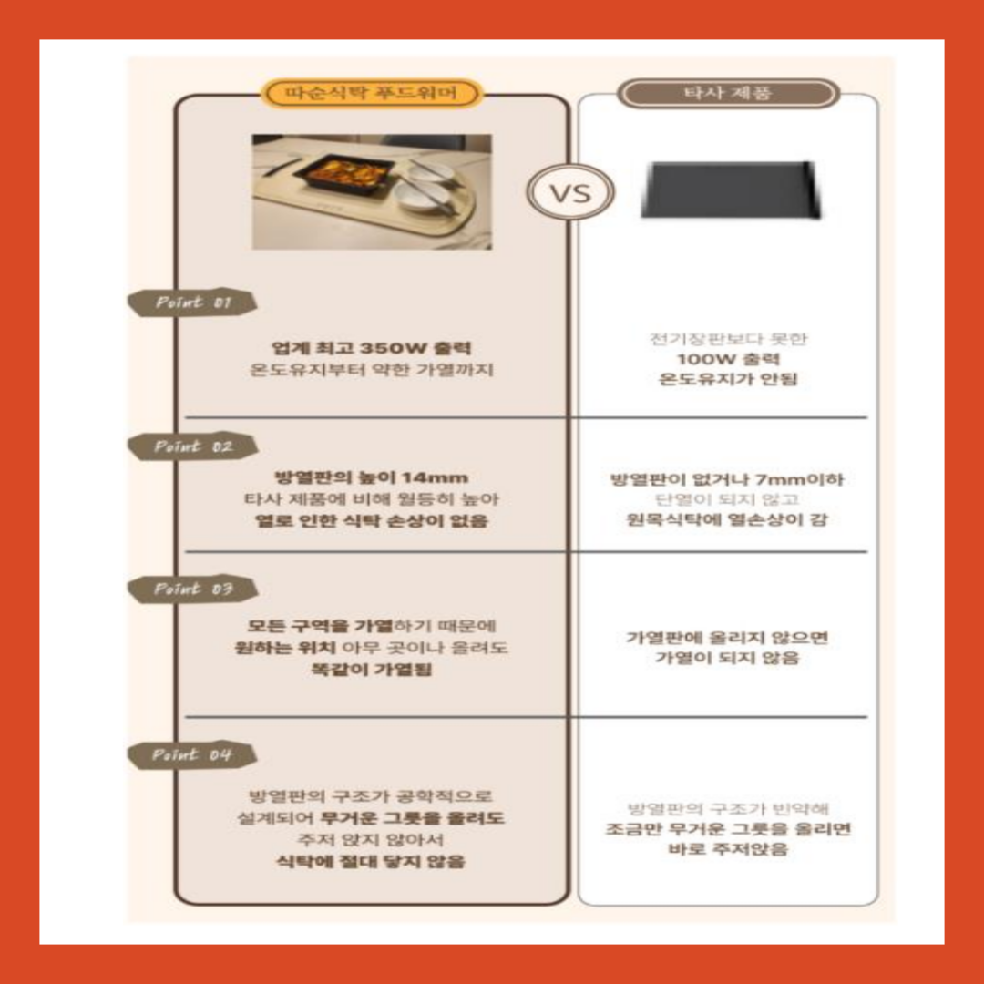 또한 가장 중요하게 생각한 부분이 안전성이었어요. 따순식탁 푸드워머는 BPA-free 실리콘으로 만들어졌기 때문에 안심하고 쓸 수 있어요. 열을 내는 제품이라 안전이 무엇보다 중요하잖아요? 이 제품은 믿을 수 있는 재질로 만들어져서 안전하고, 적정 온도로 유지되니 뜨거워서 손을 데일 걱정도 없더라고요. 이런 점에서 안전성과 건강을 모두 챙길 수 있었어요.