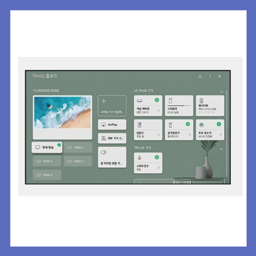 TV를 처음 받아봤을 때 첫인상이 정말 좋았어요. 슬림한 베젤과 블랙 컬러의 세련된 디자인이 고급스러운 분위기를 연출해 주었답니다. 벽걸이로 설치하니 공간 활용도 최적화되었고, 깔끔하게 정돈된 거실 인테리어와도 잘 어울렸어요. 설치 과정도 매우 간단해서 별다른 어려움 없이 혼자서도 쉽게 설치할 수 있었어요.